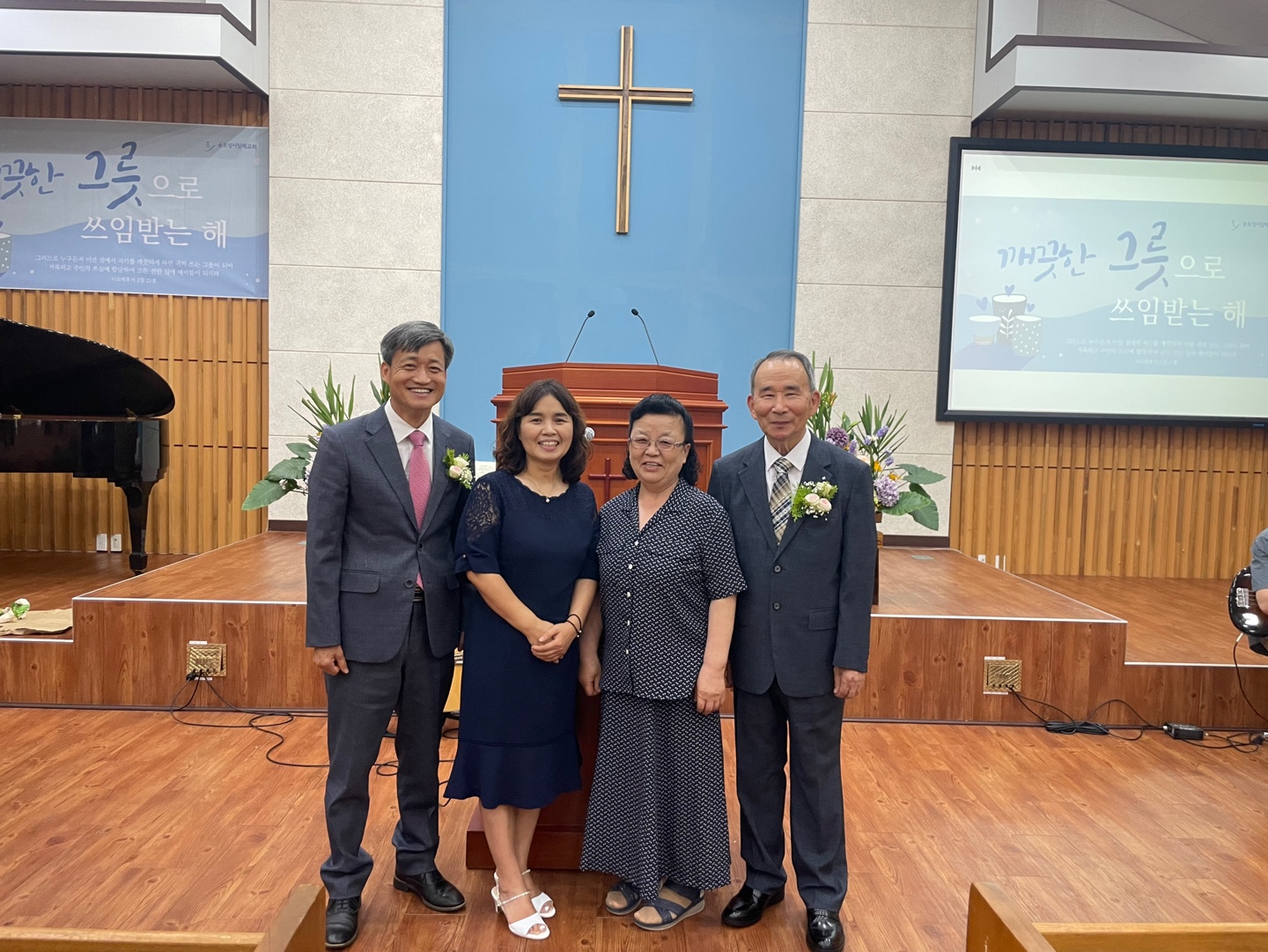 송포성서침례교회에서 34년, 만재침례교회에서 10년. 모두 44년 동안의 사역을 하시고 지난 해에 은퇴하셔서 대전에서 생활하고 계시는 정용식 김은규 원로목사님 가정을 초청하여 예배를 드렸습니다.