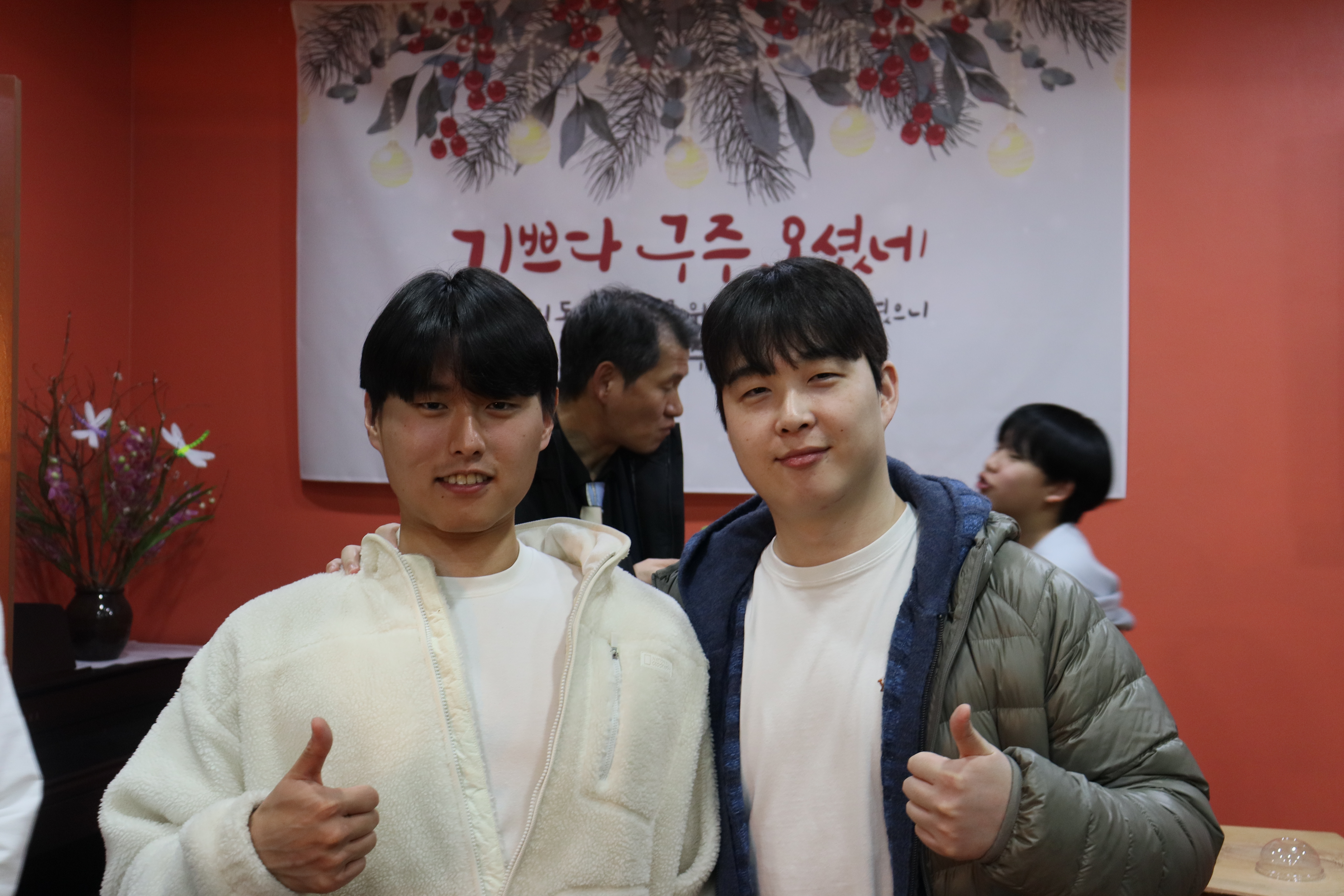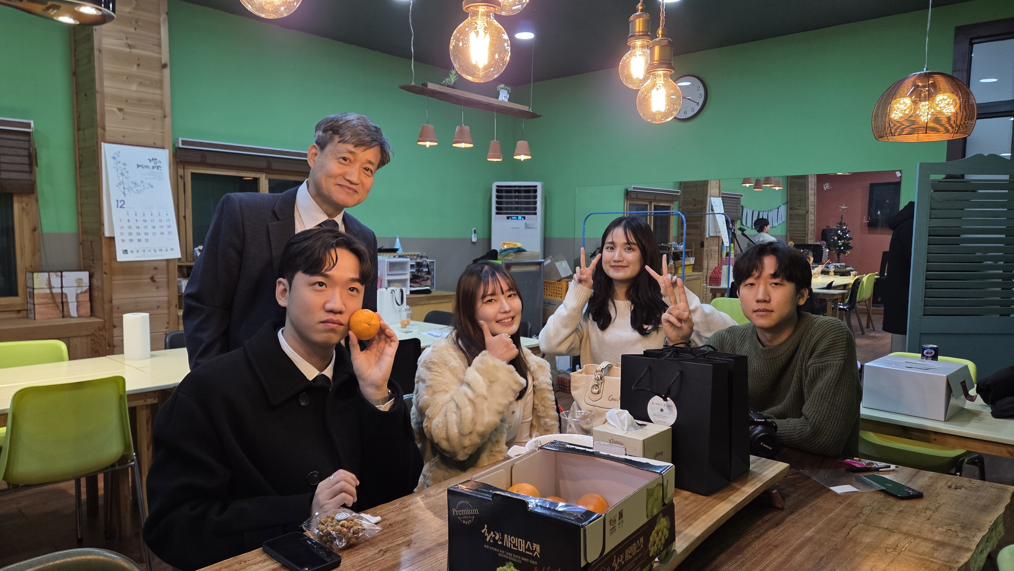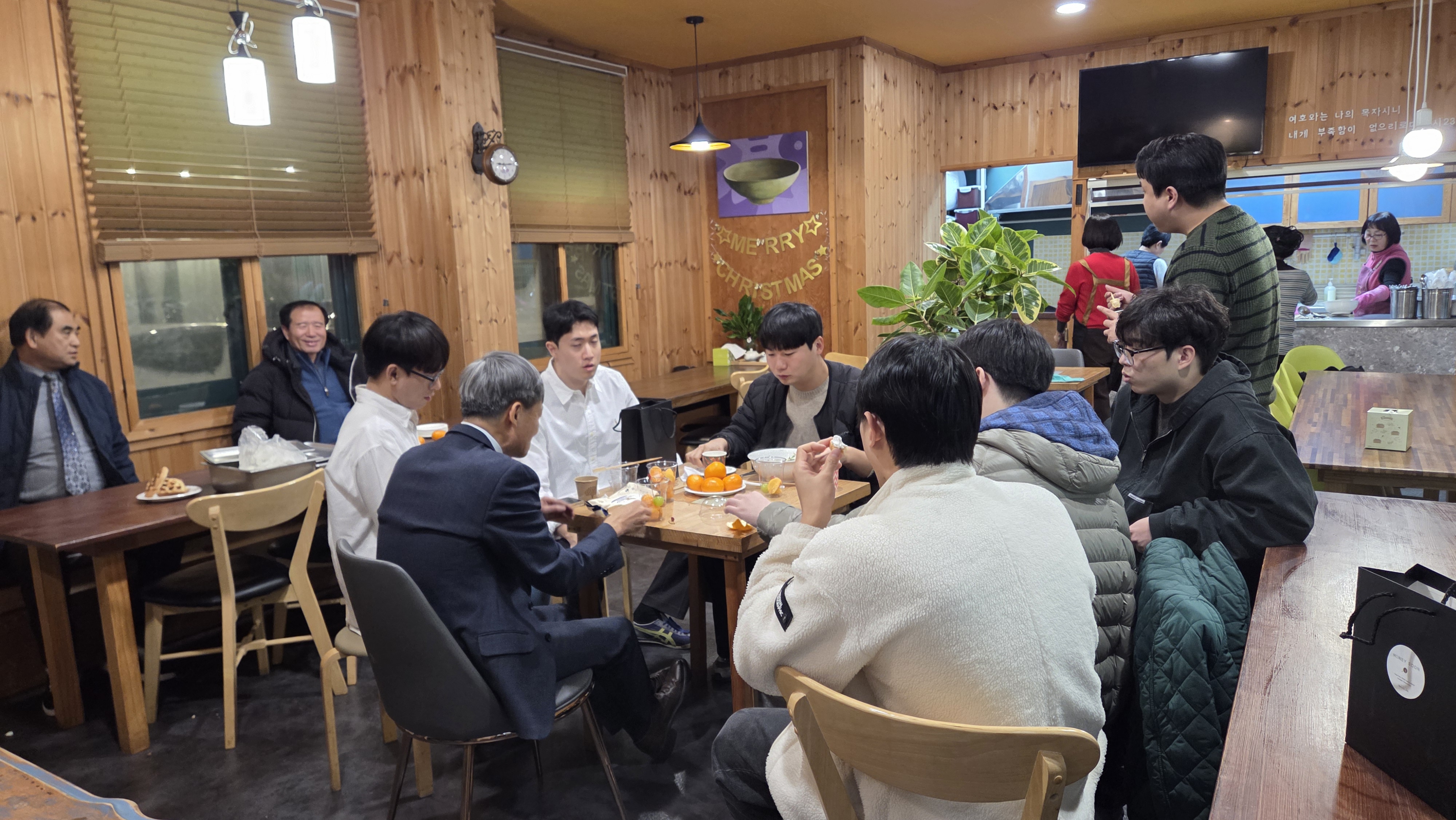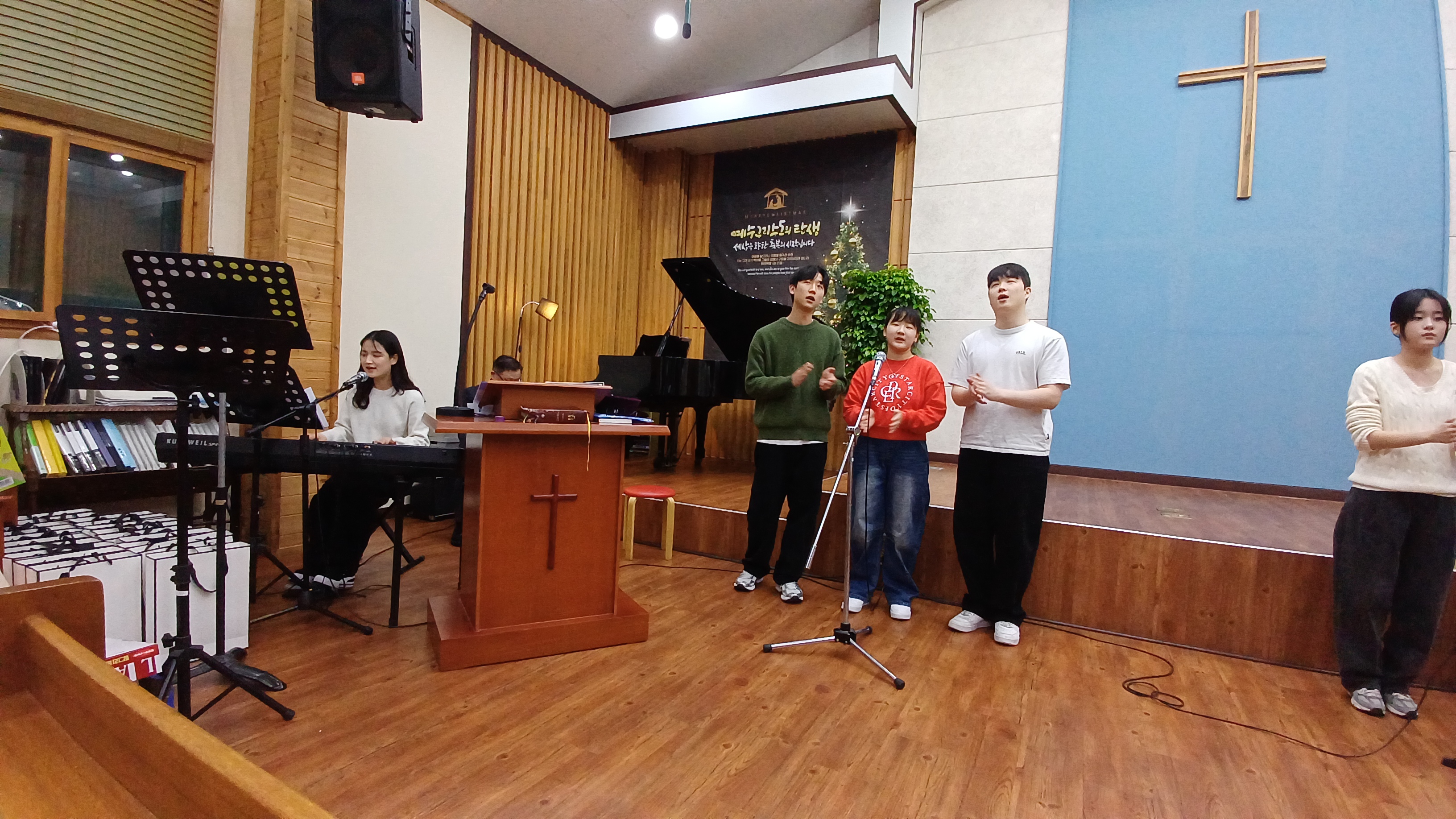 동영상 촬영에 수고한 김상규형제 성탄감사예배를 위해 순서를 맡아 준비하며 참여한 성도들과 팀들로 인해 풍성한 예배를 드릴 수 있었습니다. 또한 음식과 차량 등 여러 섬김으로 봉사하신 모든 분들께 감사드립니다. 오랜만에 오신 분들로 인해서 더욱 귀한 시간이었습니다. (김정녀 김간란모친, 김상규 김민수 홍석희형제, 조나현자매, 조준현 조은채 학생, 유정이엄마) |