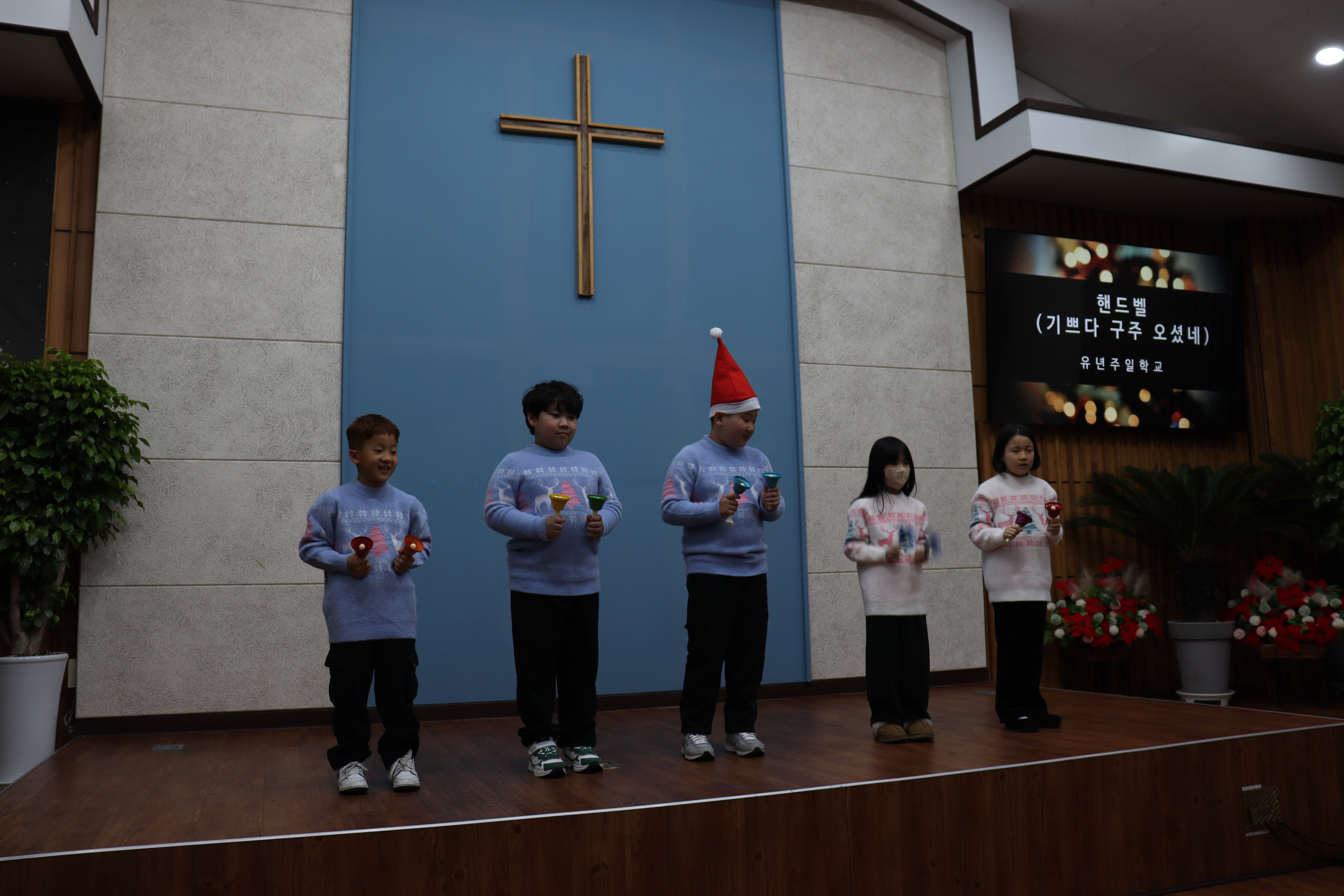 유년주일학교에서 핸드벨을 연주하고 암송도 하고 "예수님이라면 어떻게 하실까"워십도 합니다.