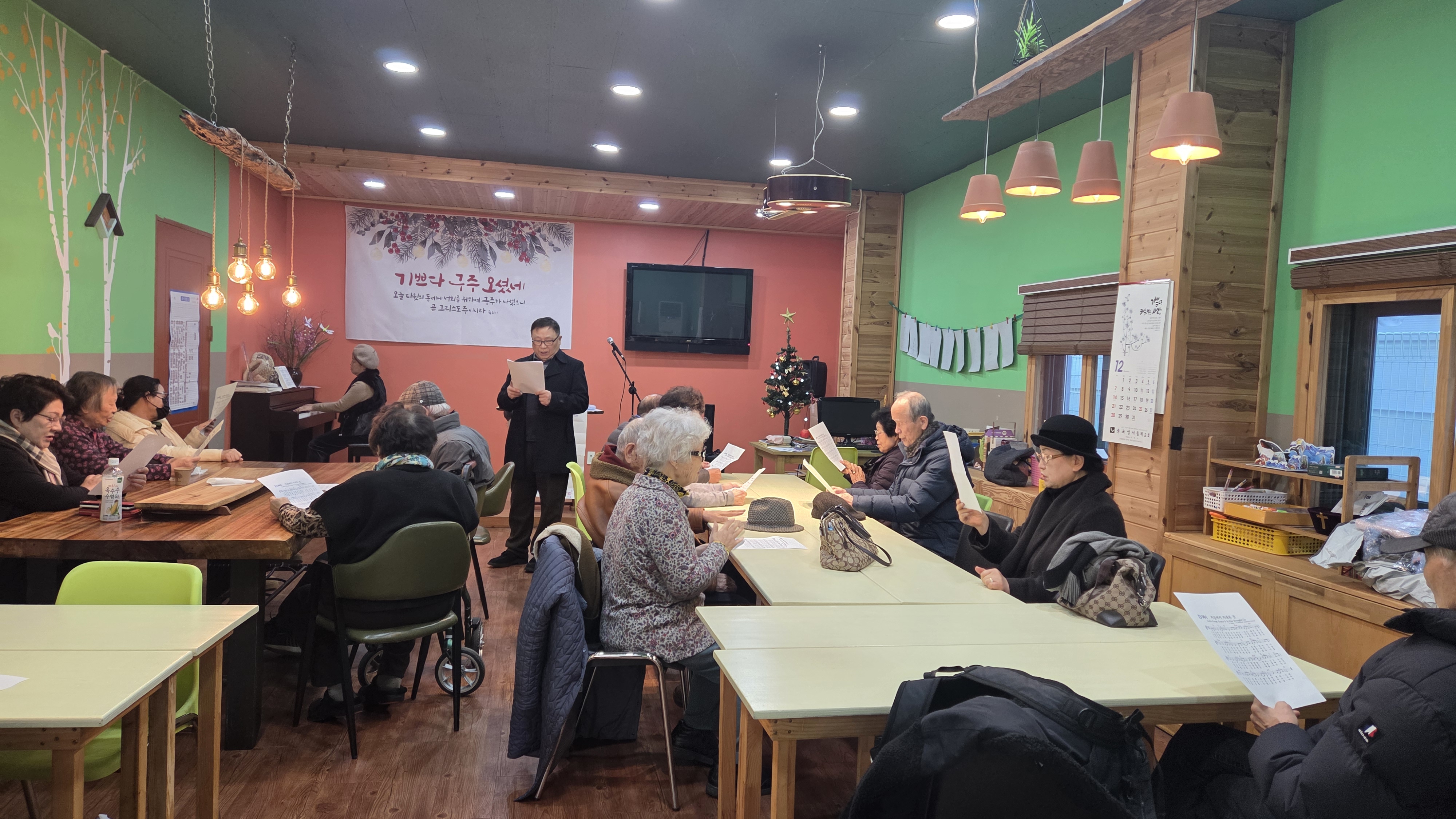 "하나님께 영광 기뻐하는 이에게 평화"(눅2:13-14)의 말씀을 나누고 집사님들과 함께 "오 거룩한 밤"을 찬양합니다.